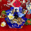 - Thiết kế sang trọng: Giỏ quà phối tông đỏ – vàng – xanh dương, tượng trưng cho may mắn, tài lộc và thịnh vượng.